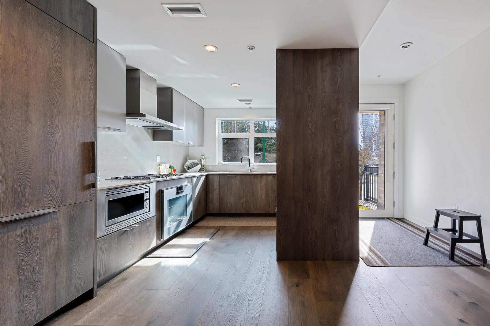 Welcome to Holland Row in Lion Gate Village, where every detail is crafted with care to elevate your lifestyle. This 4 bed Townhome lives like a single-family home featuring the master suite with double closets, views of Capilano River, spa-inspired ensuite including double sink, heated floor and seamless shower.Tailored laundry and mudroom with ample storage. Kitchens with high-end Gaggenau appliances including integrated fridge and dishwasher-setting the tone for quality and luxury throughout. Extend your living space by opening accordion style doors to a private patio allowing you to move indoor/outdoor seamlessly. Immerse yourself in a dynamic neighbourhood filled with eclectic dining, shopping, and entertainment options, all just steps from your doorstep. Call to book your showing!