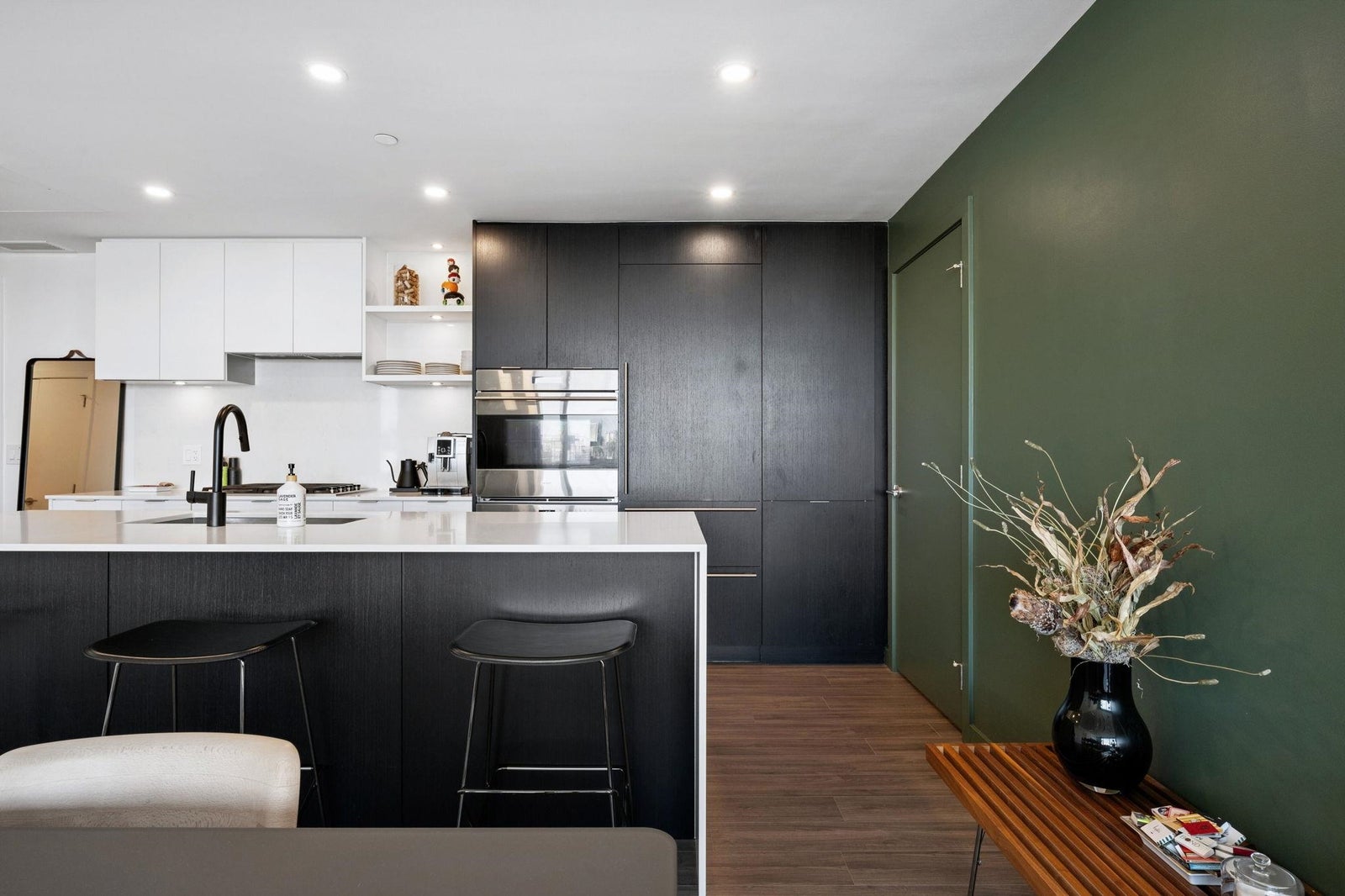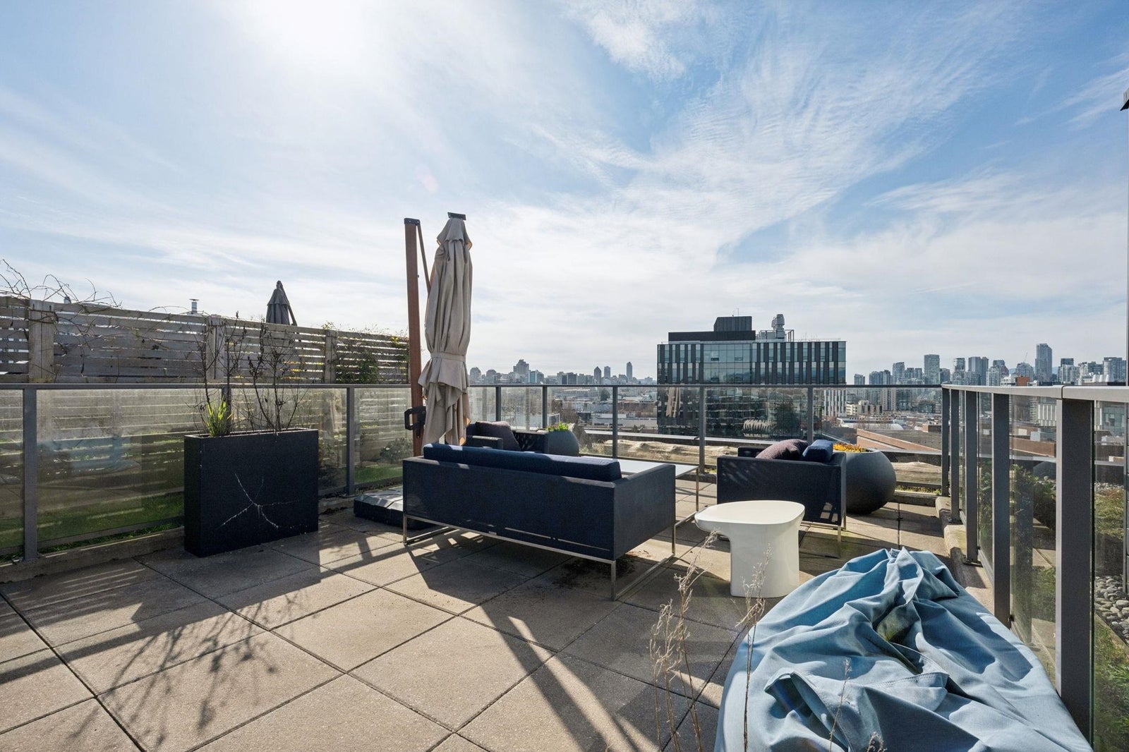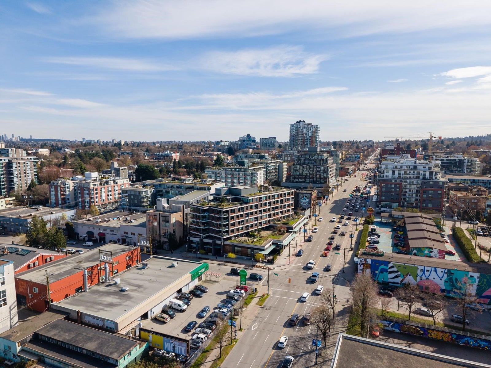 Perched atop a boutique Chard Development, this 2 bed, 2 bath residence blends refined design with urban edge. Clean lines, modern finishes, and natural light define the open-concept living space, anchored by a sleek kitchen with premium Wolf stainless steel appliances. A standout private rooftop patio offers sweeping downtown Vancouver views for an elevated setting for quiet mornings or evening entertaining. Complete with 2 parking stalls, a private EV charger, and a large storage room, this home delivers rare practicality. Set on iconic Main Street, now evolving into a hub for Michelin-recognized dining, vibrant culture, and an abundance of entertainment makes this a stylish foothold in one of Vancouver’s most dynamic neighbourhoods, with strong long-term growth and lifestyle appeal.