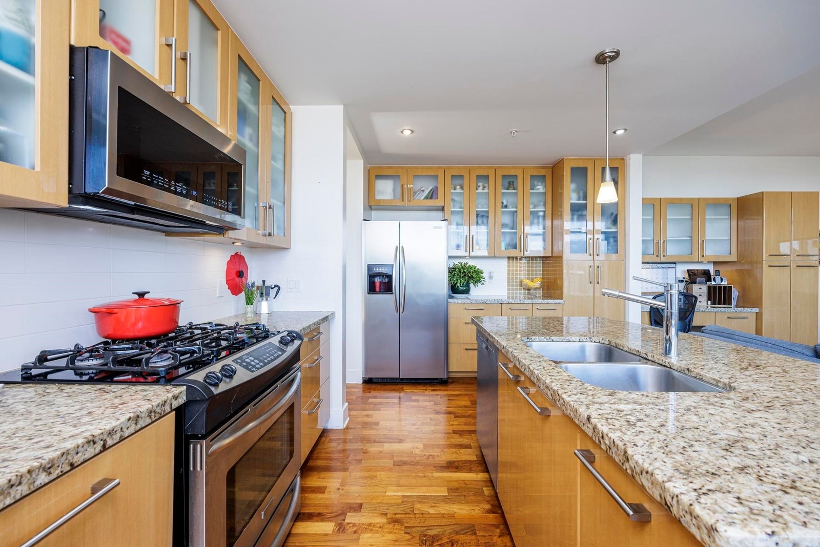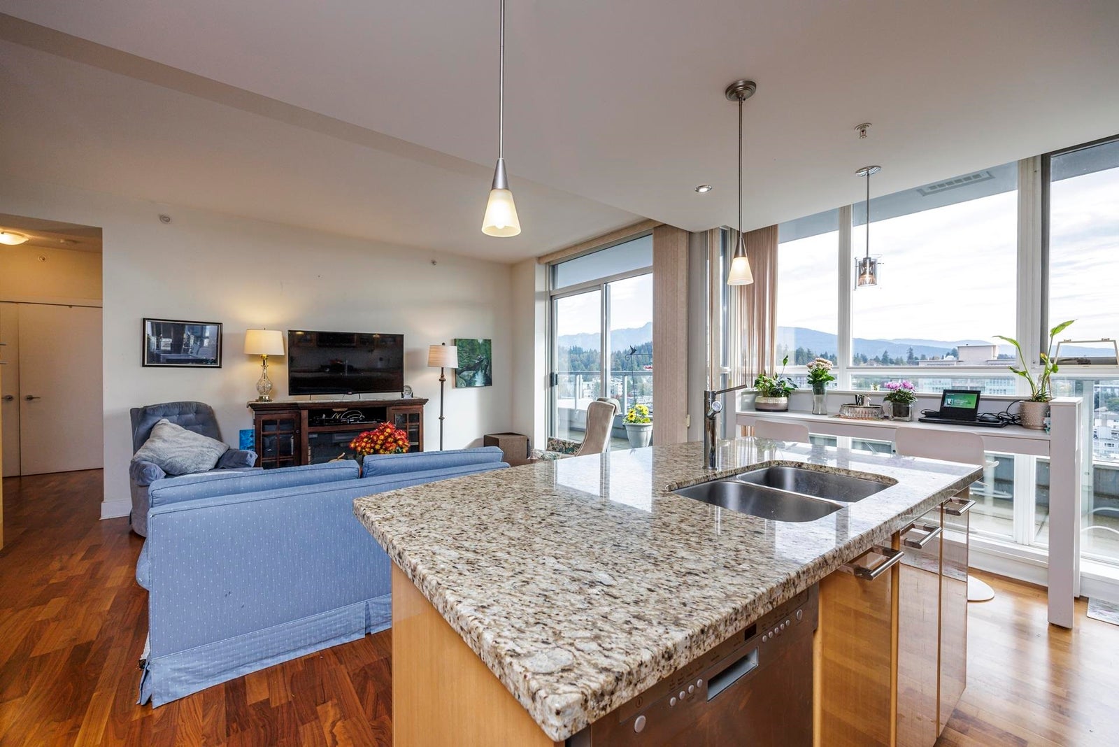 A fabulous centrally located PENTHOUSE offering 1,744sqft, 2 bedrooms and den, 3 bathrooms and amazing VIEWS!! A corner suite whose innovative design includes wide plank hardwood floors, cozy gas fireplace and floor to ceiling Low E, Smart glass thermal windows. Enjoy an expansive 700SQFT PRIVATE ROOF TOP PATIO perfect for summer b-b-q or relaxation while taking in awesome SE views. The kitchen features granite counters, textured glass upper cabinets, ceramic tile backsplash, stainless appliances and an eating bar/island open to the family room for easy entertaining. A huge primary bedroom boasts spa-like ensuite to pamper yourself, walk-in closet, + 2nd bedroom has ensuite bath too! Lovely amenities, superb location and LEED certified! 2 parking & storage included.